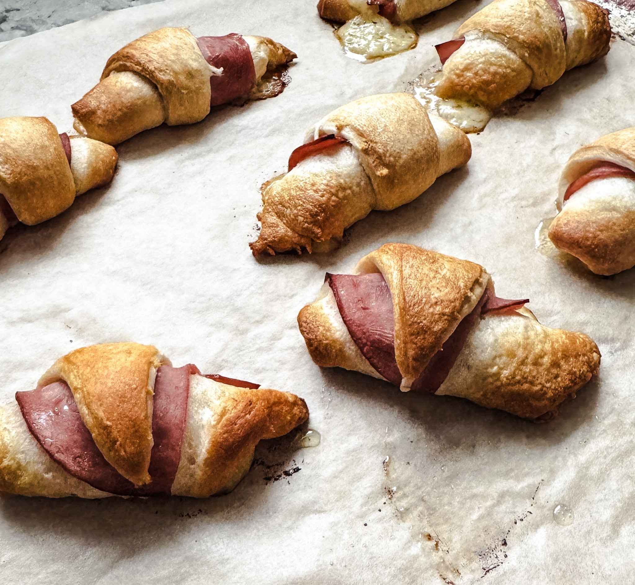 So instead of making another coffee shop run, I started recreating something similar at home using simple, real ingredients and a smart shortcut: crescent roll dough. It gives you that flaky, bakery-style texture without having to make dough from scratch. Add slices of uncured ham and rich gruyere cheese, roll everything up, and bake until the cheese is melted and the outside is perfectly golden.